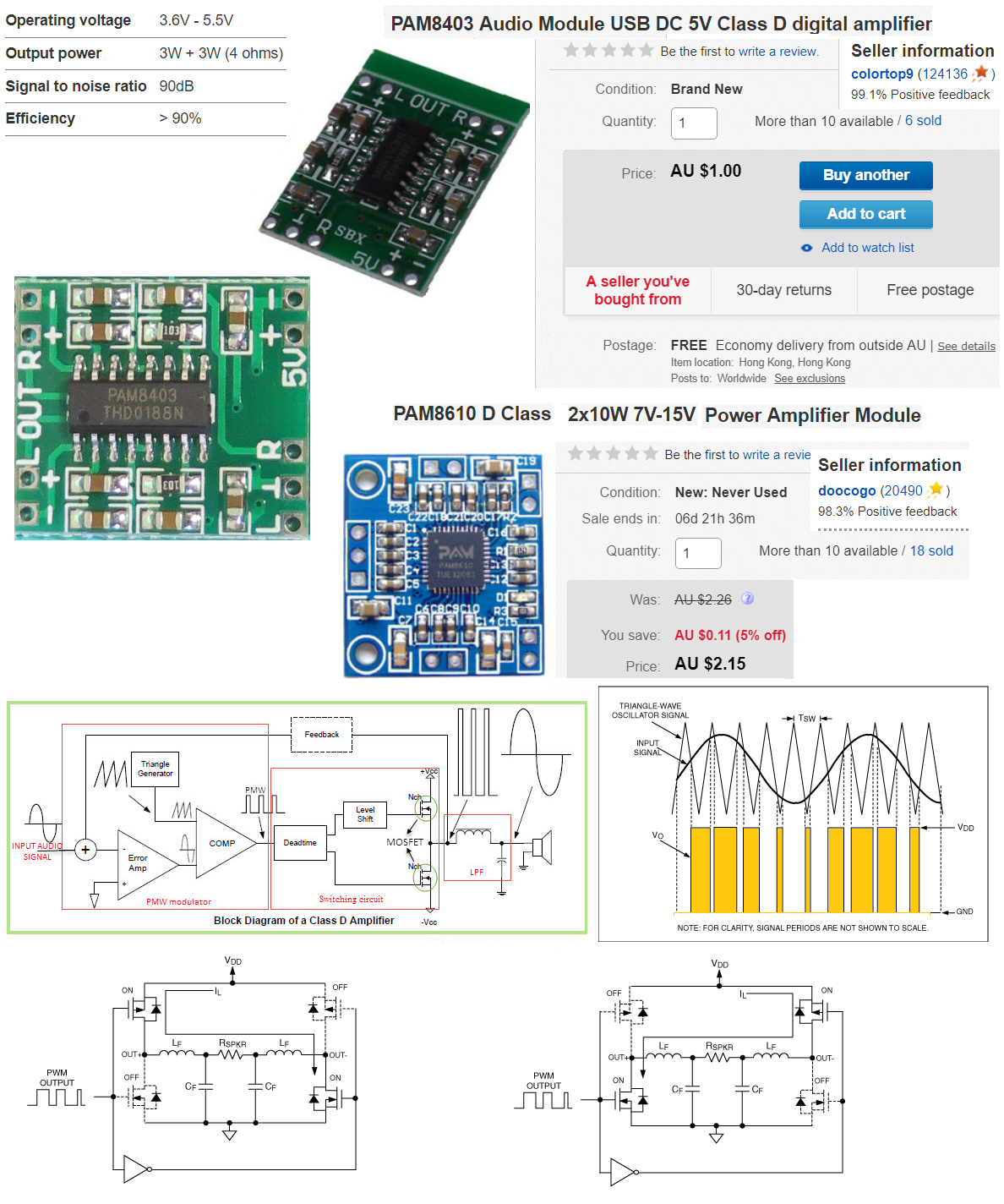 Small sized, efficient, stereo, audio-amp modules using the PWM (pulse width modulation) or class D method are now cheaply available. e.g. $1 for 2 x 3 watt (PAM8403) and $2.15 for 2 x 10 watt (PAM8610) 3Q 2018