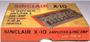 A Class D amp works by taking the analogue input signal and creating a PWM (pulse width modulation) replica of it. This is essentially a train of pulses, which correspond to the amplitude and frequency of the input signal. In its most basic form, a comparator circuit is used to match the input signal with the PWM signal. The PWM signal is then amplified by an output stage operating in switch mode. So there are two states, on or off, at very high speed, corresponding to the PWM pulses. A linear amplifier�s output stages, by comparison, see a continuous waveform and, to avoid distortion, are on for more than half the waveform (Class A/B) or for the complete waveform (Class A), greatly reducing efficiency and generating heat. The amplified PWM waveform is low pass filtered to recover the audio waveform and eliminate spurious ultrasonic noise before outputting it to the speakers. This process seems digital but is in fact analogue in nature. The signal is not �digitised�, or assigned a numerical value; the PWM pulse train is an �analogue� of the input audio signal. The Sinclair X10 (c1965) used the PWM or class D method of audio amplification, but from some reports, many units sold weren't too reliable. (possibly due to shortcomings of the semiconductor devices available at that time?) Links: