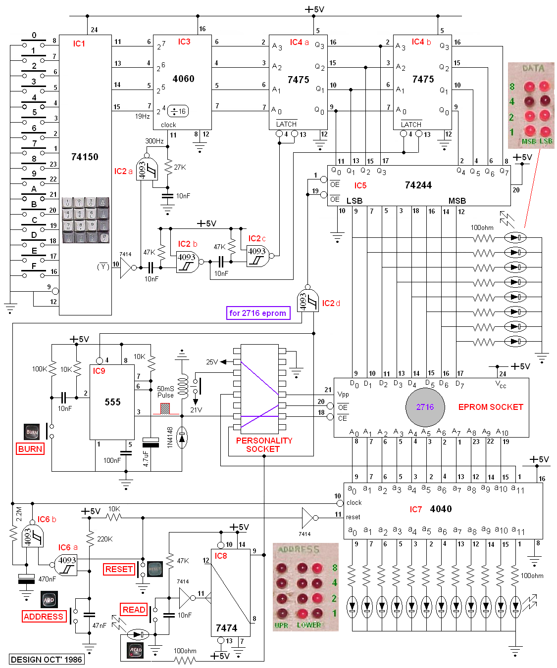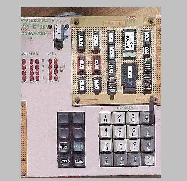 As a number of popular EPROM's are available; the ability of this circuit to handle several types was desirable. This was acheived by use of a "personality" plug .