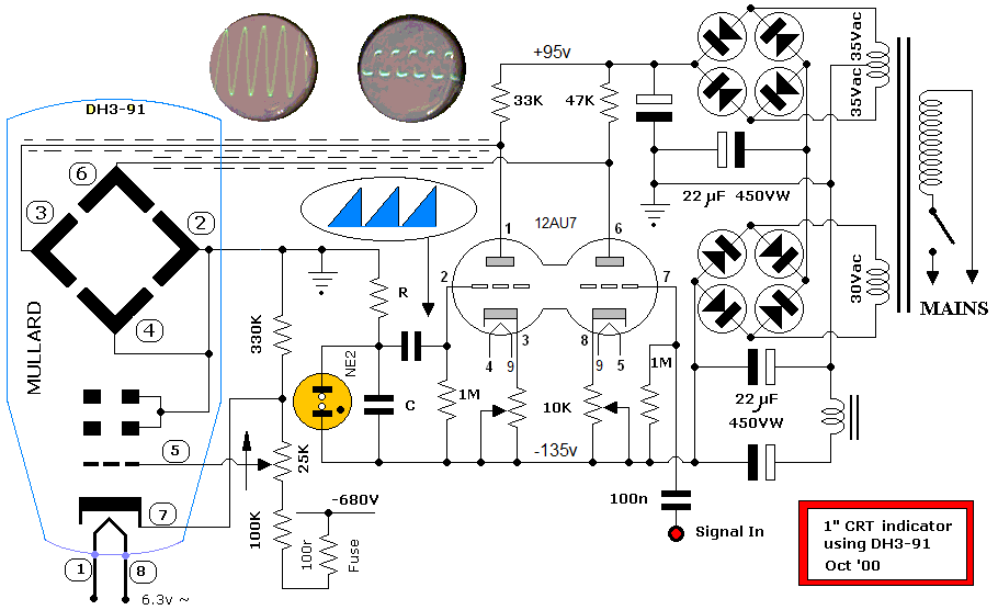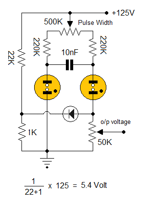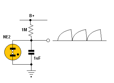 Neon relaxation oscillator used for simple CRO timebase generator. (click to enlarge)