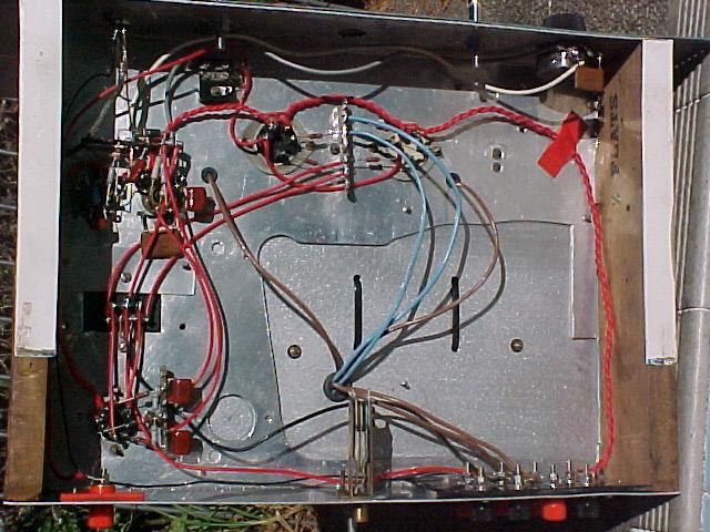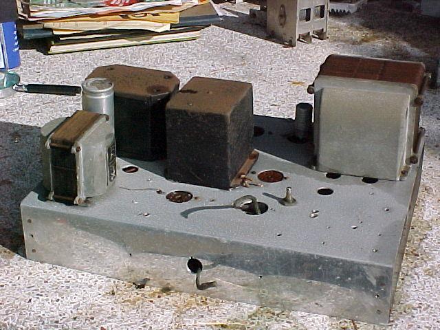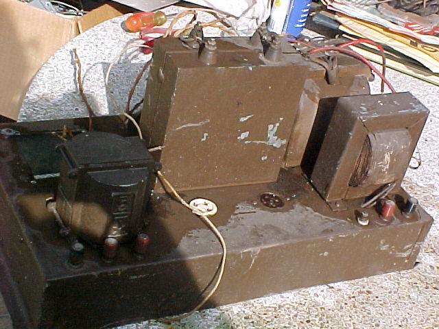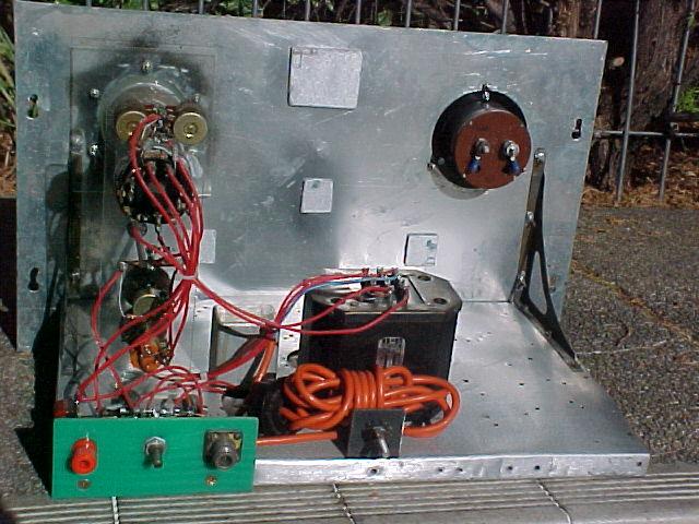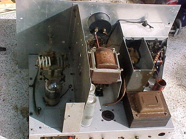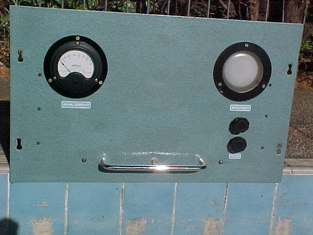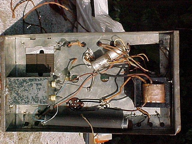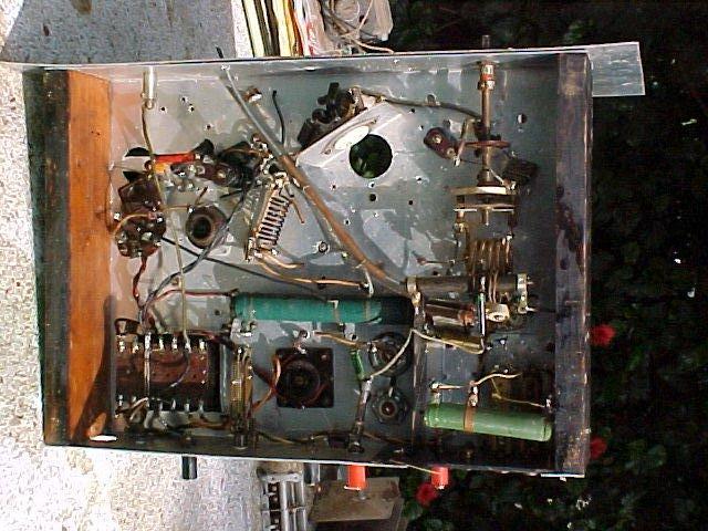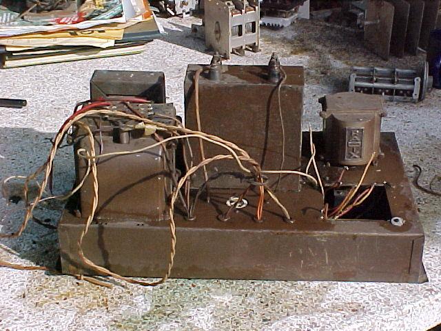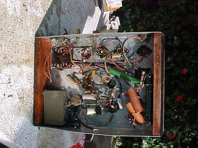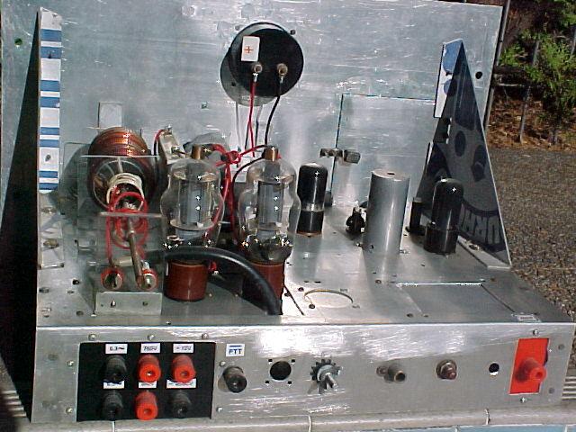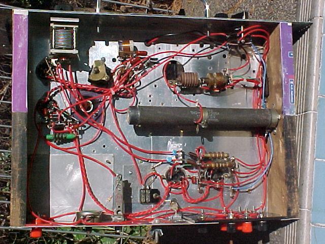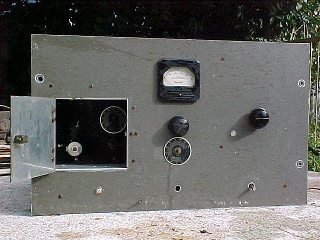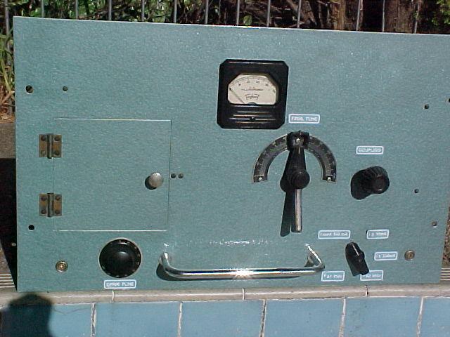 I acquired this hand-crafted ham transmitter from an on-verge rubbish skip (dumpster). It was located outside the QTH of a recently SK'd O.M. I couldn't quite work it out, many parts were missing, devoid of any labelling, crystal frequency would not multiply into any Amateur frequency assignment. From the LC tuning circuits I feel it was either for 28 MHz or 52 Mhz, and probably dated from mid 1950's (pre TVI days, Television not starting in Western Australia until Oct' 1959) However (Aug 2012) from this web URL http://www.vk6uu.id.au/vk6hk-history.html we read:- A few thoughts about Early VHF activity in VK6 By Don Graham VK6HK I can’t speak from personal experience before my VHF SWL days from 1948, but word has it that there was significant activity on the then allocated 56 MHz band pre WW2. Transmitters were often of the AM modulated oscillator type with superregenerative receivers. There were exceptions; one I know about was the crystal controlled AM transmitter of Jack Gabbertas VK6GB (SK). After WW2 Jack resurrected this tx from the care of the Post Office whence it had been quarantined during the war and retuned it to 50 MHz. The complete unit was disasembled, rebuilt and repainted; as a Xtal controlled, Hi - Level modulated, 150 watt AM Transmitter for the 40 metre Amateur band ( 7 ~ 7.3 MHz) Overall cabinet dimensions are 1600mm (H) 500mm (W) 330mm (D) on castors as it is quite heavy! Before and after pictures : scroll down and across.