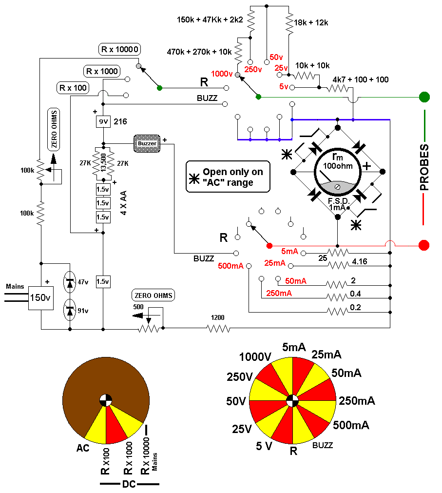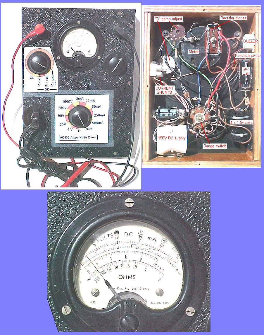 This is a hand-built test instrument which will measure Electrical resistance in Ohms, DC & AC voltage and DC & AC current.